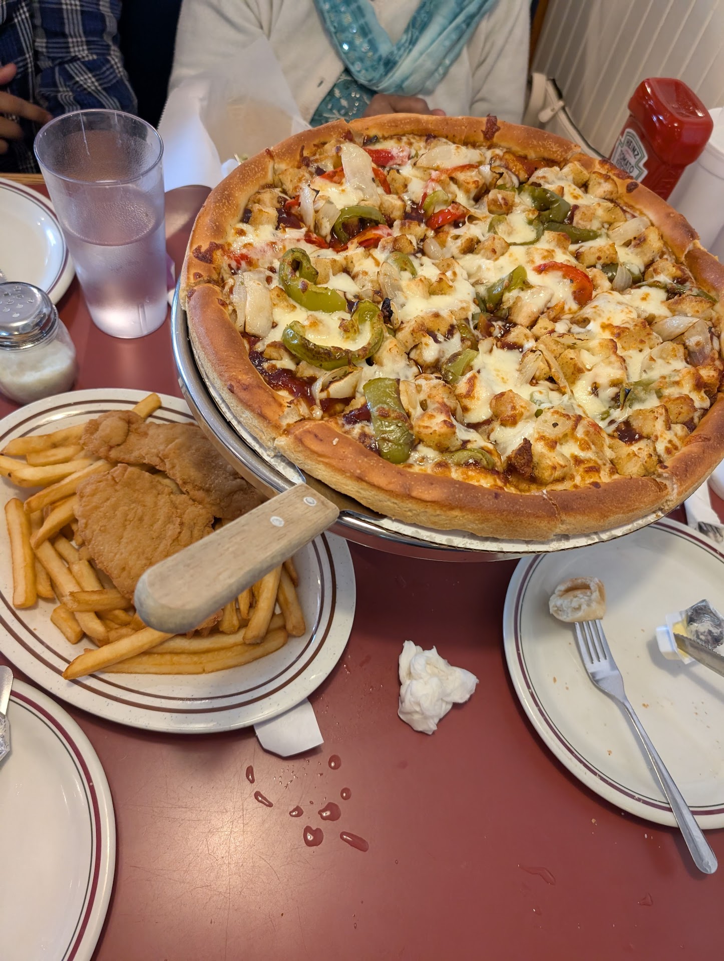 Dissapointed that I got the "hurry up and buy" attitude from everyone. The pizza was great. 24inch shrimp pizza and 16inch Greek pizza but go through that again? Nah