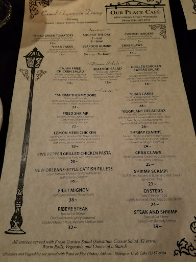 First, I want to be clear that I rarely write reviews. I also understand that you cannot please everyone, no matter how hard you try. I was hoping so much that our visit to Our Place would be just as great as it has always been for so many years. Additionally, I was rooting for the new owner to do great things with this time-tested Café, so that it could continue to be a bright spot in Wetumpka for many years to come. Unfortunately, this (obviously) is not the case.
