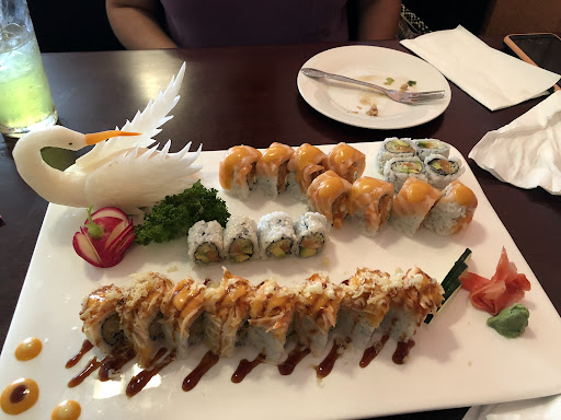 EXCELLENT service and greeting upon entry and exiting the restaurant. The atmosphere was laid back and it was the lobby and dining areas were clean! Our waitress was prompt and punctual for any napkins, drinks and ordering timeliness. She was more than willing to accomodate my 3 year old and bringing chopsticks and an saucer bowl for him. We ordered two appetizers, which come out before we could even put our straws in our drinks. We also ordered 4 entree plates which were all sizzling hot and fresh and we ordered a specialty sushi roll. The entrees and sushi items all arrived to our table before we could finish the appetizers. All items were portioned well. We had 4 leftover boxes to take home, in which were basically full meals and part of some noodles which could be considered a lunch portion. The pricing was excellent for the food itself (taste), the service and the food quantity. A friend told us about this hidden jewel and I am so glad they did! We most definitely will be back. BTW, the panang curry...