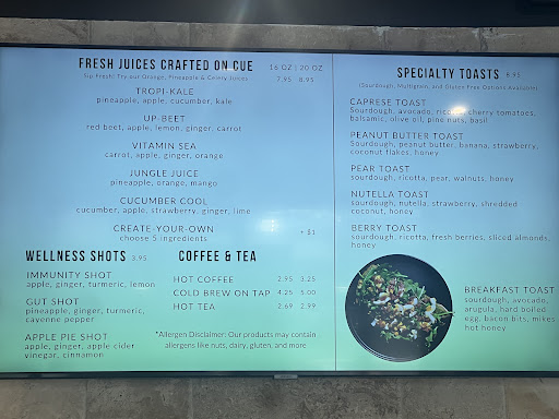Let’s get right to it. The vibe? Chill, clean, modern, a little tropical without trying too hard. It’s got that “grab a smoothie and pretend life is easy” energy. The inside is cozy but stylish — not fake bougie, but the real “we care about our space” feel. Whoever designed this spot knew their audience: people like me who want something fresh, fast, but with a little attitude.