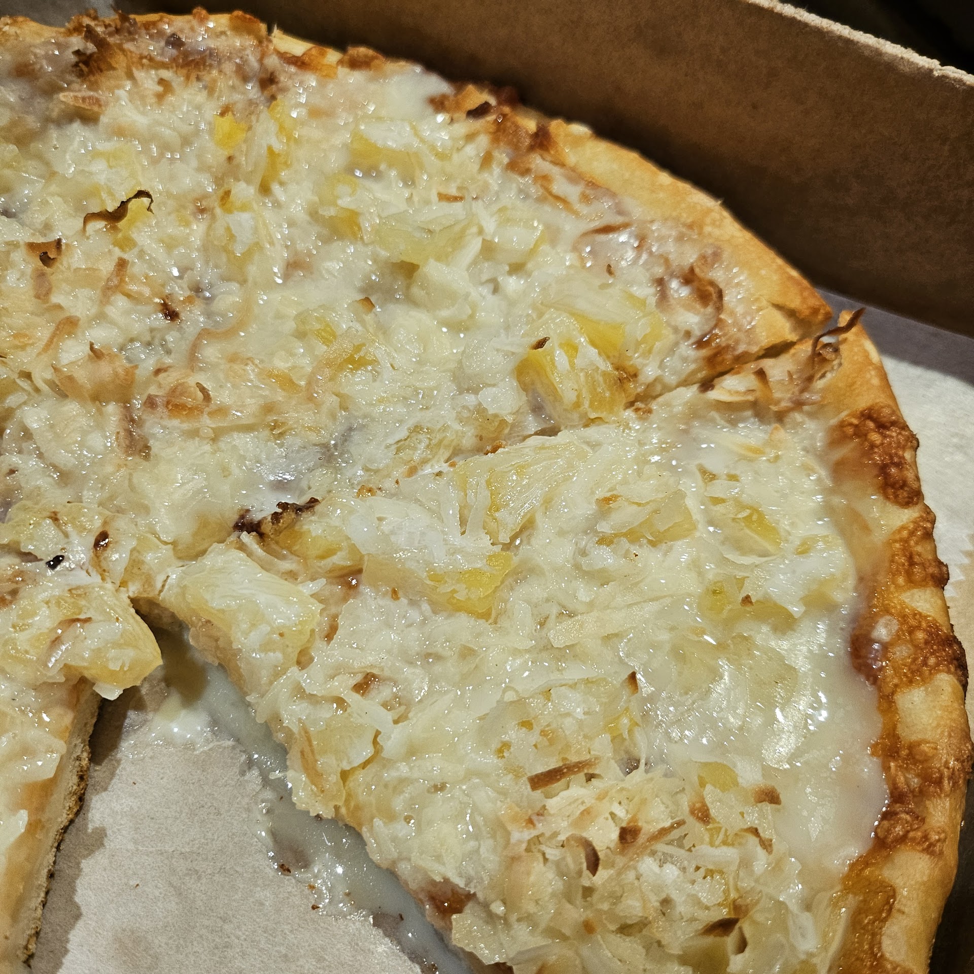 I need to come back for their sweeten condensed milk, shaved coconut, pineapple, and dark chocolate āpiƱa coladaā pizza!