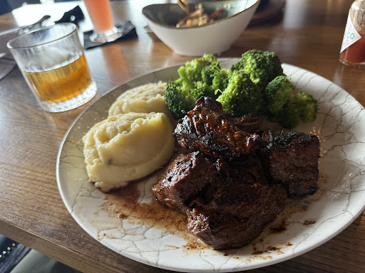 For dinner, my youngest son wanted fries with cheese and bacon, but they couldn't make that, so he settled for kids’ quesadillas. I ordered the steak tips with sweet potato fries and steamed broccoli, which were poorly cooked and overly salty. Even after sending it back twice, it remained on the bill. Another thing to keep in mind is that when I ordered the steak tips, I had to pay separately for the steamed broccoli and the sweet potato fries. The steak tips were $29, the sweet potato fries were $8, and the broccoli was $7. For a restaurant of this caliber, especially one that just opened, you would expect a superb experience.