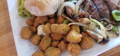 Read morePassing through Wharton, we found the 9ers Grill. A charming walk up to order restaurant. The menu is huge with great variety. Baked desserts accompany the front kiosk area where you place your order. Food items are made to order. If you want fajitas, catfish, burgers, cheese steak sandwiches, steak, shrimp, etc., this is the place to be. It took me roughly 5 minutes to figure out what I wanted due to the variety. Ultimately, I chose the cheesesteak sandwich with potato salad (normally comes with fries) for roughly $10 as a combo. My husband ordered the chopped steak with garlic mashed potatoes and broccoli, for roughly $11, and my daughter, a double cheeseburger with fries combo for roughly $10. We finished the meal off with a shared chocolate ice box pie slice. The meals were delicious. No complaints at all. I devoured the cheesesteak. Very delicious. The burger came on a sweet bun, perfectly sized and proportioned. The chopped steak wars well prepared and seasoned with only onions and peppers. The garlic potatoes were pretty heavy on the garlic and salt. This would be the only negative. The extra size of delicious fries made up fir that. All in all a great meal. Restaurant provides comfortable booths and table seating. Clean restrooms. Outdoor seating is also available. Refillable fountain drinks and tea. I believe they also had a larger party, or meeting room, on the side. Ample parking. Trendy music playing in the background. Great place for families or if dining alone. I saw both. A definite drop by location. Be...