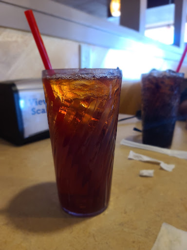 The server brought our drinks. We asked for silverware and straws. At least 10-15 minutes passed and still neither. We really needed something to stir our coffee with, my finger wasn't am option. Of course, by the time she brought the silverware and straws, I could have used my finger since the coffee had cooled off a lot.