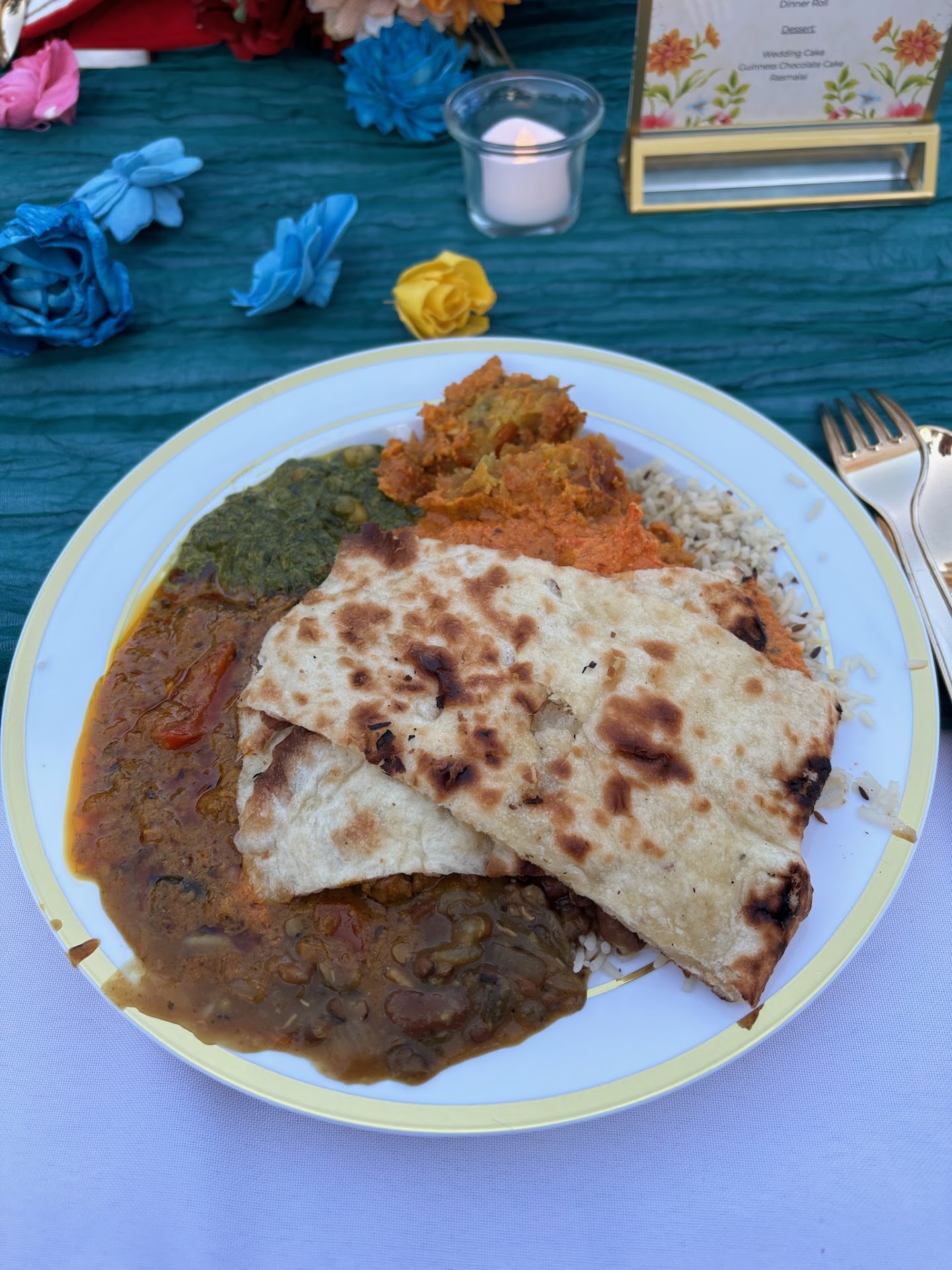 Lamb Madras Saag Paneer Dal Makhani Aloo Chaat (sorry, I don't see this on the menu right now)