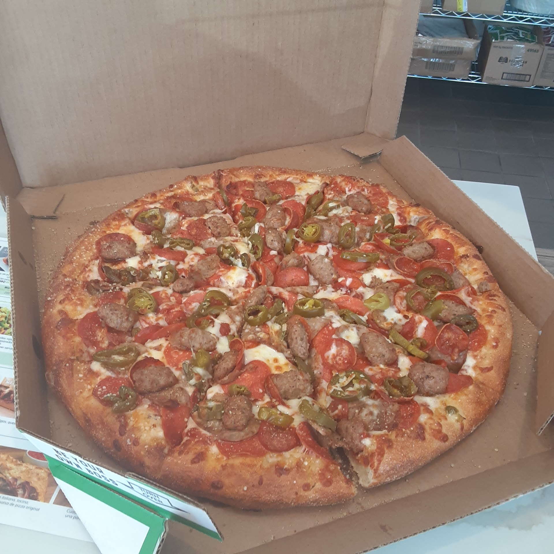 Read moreOne guy at the store was really nice asks checked that my order was correct. Gave atmosphere a3 because there is no atmosphere to speak of, just a counter to pick up your food. Speaking of the food, the pepperoni pizza was good especially the pepperoni cups. Very subtle garlic flavor in the crust. The bbq chicken pizza i did not care for and I love bbq. The sauce was too much and too sweet. It tasted like Rachel Ray's brown sugar bbq. The boneless bbq wings were beaded nuggets with the same too sweet sauce. I prefer a smoky bbq sauce. The Buffalo wings were soggy where I prefer crispy and the sauce had the vinegar flavor but not buffalo. Not worth the 7 mile drive but wouldn't go back if it were 1 mile away. Many better...
