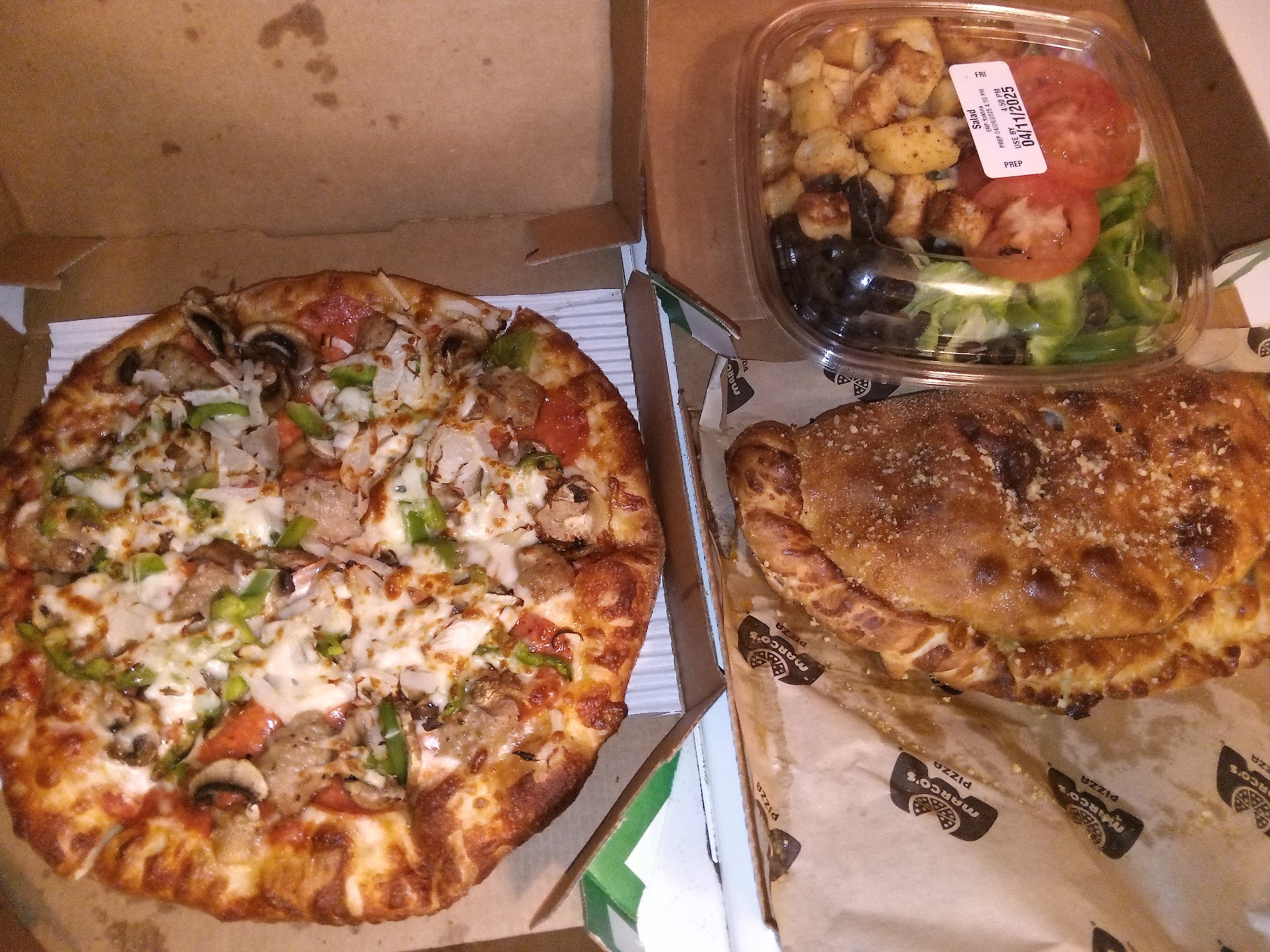 Not only did the order arrive 50 minutes after is was estimated to arrive, we received the wrong order, to boot! We won't be ordering delivery here again, probably won't be ordering from Marco's for quite some time. Note: The pizza was good despite being late and the order...