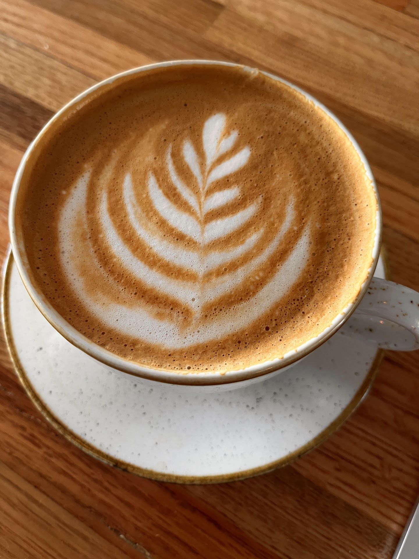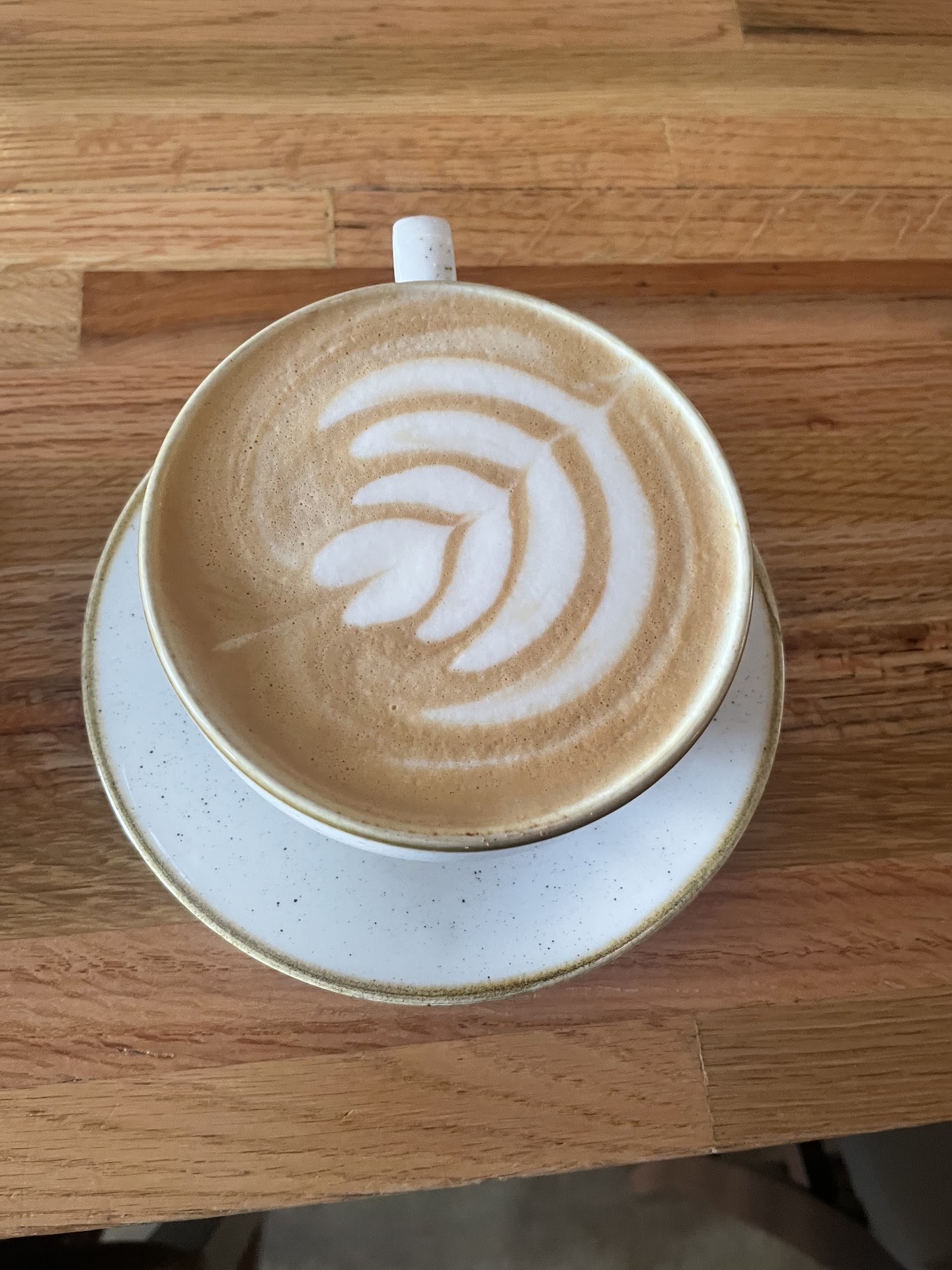 Ok yes! first, I love that the wine bar now is a daytime coffee shop, always a genius move imho. love the vibe; the music matches the name, the high vibes energy of the barista is the cherry (cheery) on top. the mountain milk latte (dairy free version) is excellent. it reminds me of horchata a bit with the cinnamon and spicier flavors. barista homie generated some lovely latte art leaf peepin. I like the variety of seating options which is sometimes the make or break for me: soft bar chairs with backs, booths, high tops you can stand or sit at, and some sofa seating. music is low. some are on calls, not too loud, the level of sound is welcomed. parking lot to the east and street are both 2 hour, was easy for me at noon to find parking and a seat. the only thing idk about yet is outlets!