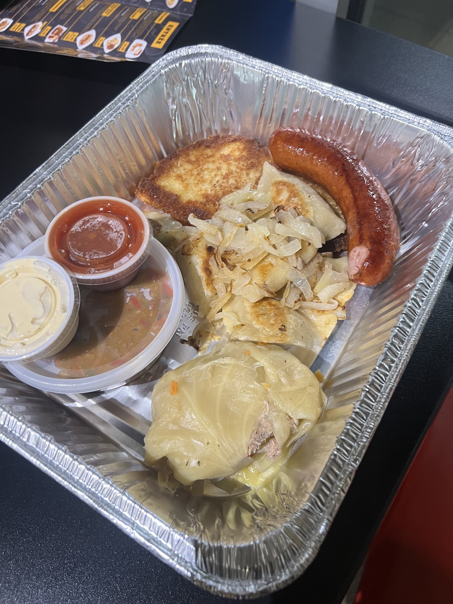 Read moreReally enjoyed this place. As a real Pole who grew up in Poland eating authentic Polish food, I never have too high of expectations about Polish food served in what seems like a more Americanized restaurant. I had the Polish sampler and was pleasantly surprised by most of the items. For one- this is a massive tray. You could easily split this with someone unless you’re both starving. The pierogi were delicious (I tried one of each flavor since it comes with 6)- but the real winner was the caramelized onion sour cream. So good. The goulash was different than what I’m used to but delicious. The bell peppers and onion made it nice and sweet, and you got a lot of pieces of meat inside. The schnitzel was HUGE and nice and crunchy from the breading. Really everything was great. Maybe not 100% accurate but close, and so delicious that it doesn’t really matter. I did take one star off because the general vibe of the place is just ok. Something about ordering from a counter at the front inside a strip mall just doesn’t have the same appeal as a sit down restaurant. But the food did come out much quicker than it would...