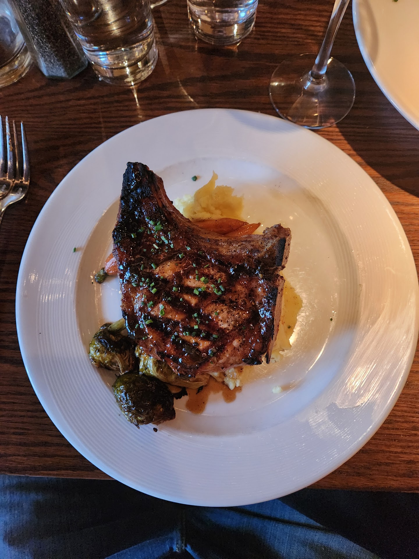 The menu was not really expensive nor cheap. There were several things on the menu that looked really nice from the Halibut curry (replaced by Mahi Mahi for seasonal reasons), to grass-fed filets and crab macaroni and cheese. There were only two non-salad vegetarian options - Ratatouille Lasagna and Pesto pasta. She went with the Ratatouille although there is a 20 minute wait for the lasagna to heat. I went with the hand-packed burger with caramelized onions and cheddar cheese.