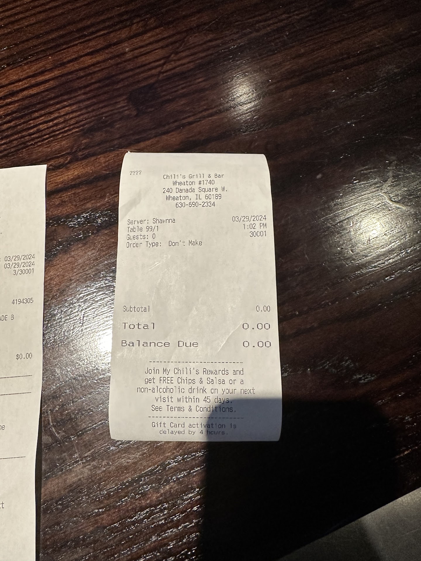 He was very kind and took the chicken crispers and the replacement meal item off our bill, which I appreciated.