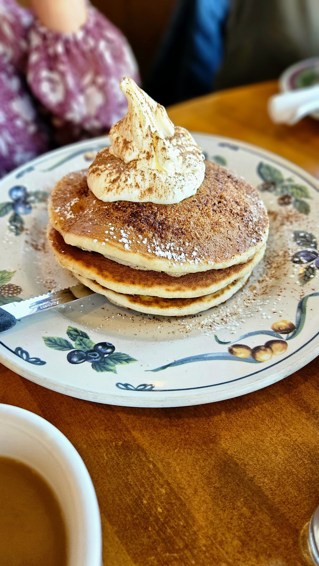 Our server was eggcellent. She was an absolute gem and a rockstar. Served us our drinks right off the bat, brought us out some delicious flavored croissants, and took our orders, which came out in practically no time. The food was fantastic! Had some chilequilles, corned beef hash, pancakes, fries & chicken tenders for our little ones, and a couple of breakfast skillets. All were hot, ready, and delicious upon arrival and tasted country farm fresh.
