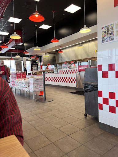 Read moreI’ve been very disappointed in five guys. I’ve heard great things about five guys and decided I would finally try it. The ambiance in the restaurant is fine, a lot of yelling orders but it has a nice old diner feel to it. A bit cramped with tables and chairs very close together. The service was fine, but the burgers were extremely overpriced and honestly the burger I got was one of the worst burgers I have ever had. Even McDonald’s makes a better burger. It wasn’t juicy, there was barely any meat, and there was unnatural gristle on it. Even though it was an assembly line for burger it still took about 10 minutes to get my burger. I only ordered a shake, burger, and fries. It cost be $20. Why on earth would you need that much money for such a bad burger, a regular shake, and fries. I will admit that the fries were very good, but for $5?!?! I would not recommend. It seems like they were hoping their excessive topping would make up for their bad burger patties. The burger bun fell apart when I got half way through it. Please go to steak and shake instead. Even the long wait is worth it. A steak burger is 100 times bette than whatever five...