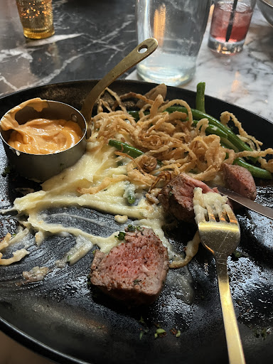 Read moreOverall a beautiful small boutique restaurant, wonderful to have walking distance from my house! I went for my birthday, I’m usually and STK girlie for special occasions but was very excited to try this new spot. The good: atmosphere, cocktails, and the music was amazing imo, played lots of top notch deep house/chill EDM music (but you sticks in the mud don’t worry it was not loud it was at a restaurant level) idk if they always play this kind of background music but music and vibes were A+ I had a filet and it was a B grade when compared to other places at the same price point, better than Outback (or similar cheap/mid priced chains) but not really worth the cost, it was slightly more than medium rare, but was over seasoned, not enough for me to send it back but a little disappointing nonetheless. They don’t claim to be a steak house so it’s a perfectly fine steak for a general restaurant, but I don’t think I’ll spend money on a steak here again. The service was very slow and my water was never filled without me having to flag the server (who was hard to flag down despite it being a tiny space). The waiter was very nice but not attentive, and restaurants in the price and above I expect at least above average service. The kitchen was clearly disorganized as I had someone else’s food sent to my table 2x. When I ordered dessert they brought it out w no spoon (after clearing my other silverware) then after asking for one I had to wait around 10min…then 10 more min after getting my spoon a kitchen staff showed up with another one. This place is pretty new so the staff is still probably working the kinks out and everyone was very nice. I’ll definitely give it another try or two but...