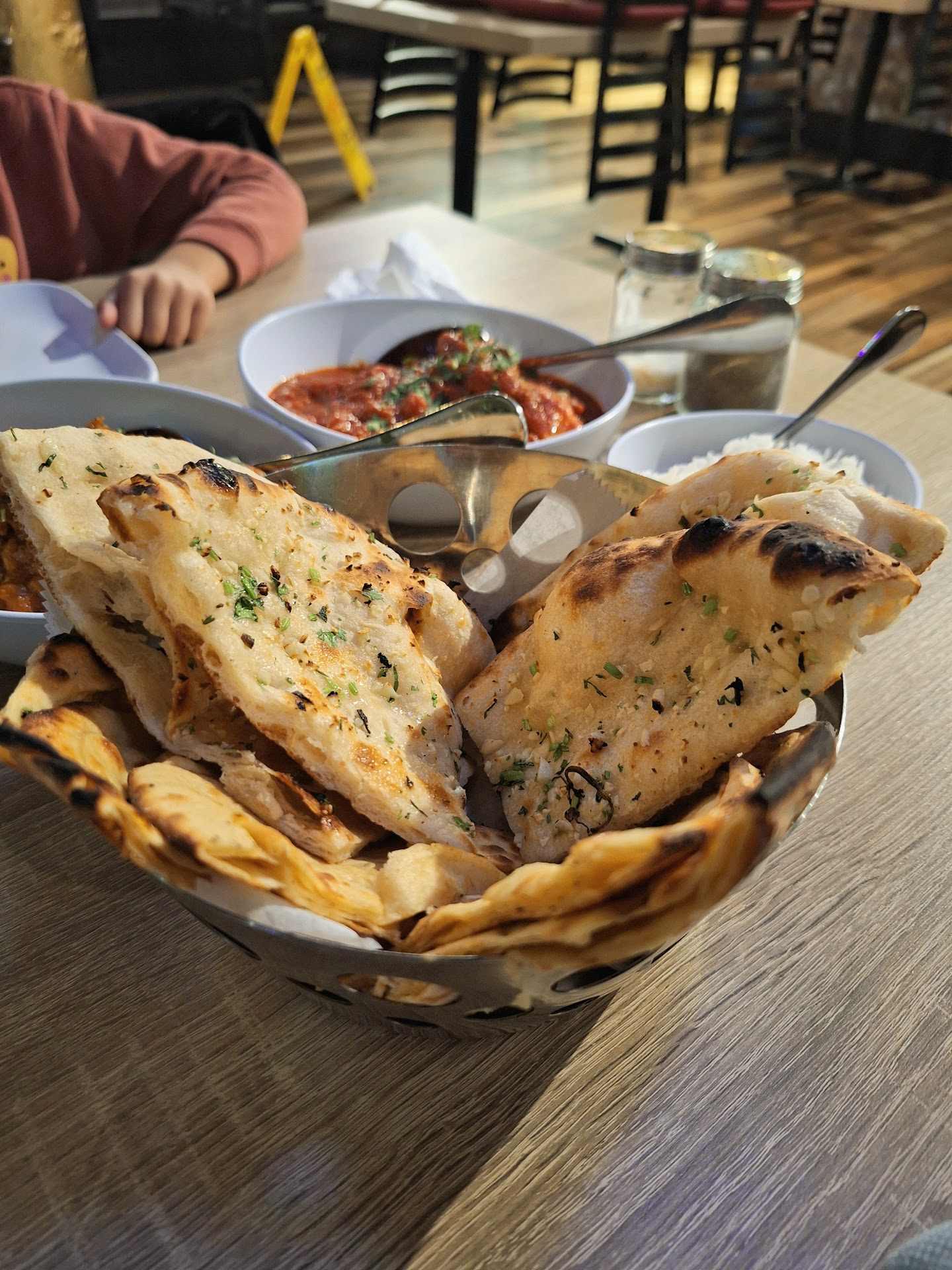 Bread & Starters: A Mixed Bag Garlic Naan: Standout—flaky, buttery, and aromatic. Tandoori Roti: Disappointingly nontraditional, lacking the earthy, wholemeal texture. Aloo Tikki & Samosas: On par with standard American-Indian offerings—inoffensive but unremarkable.