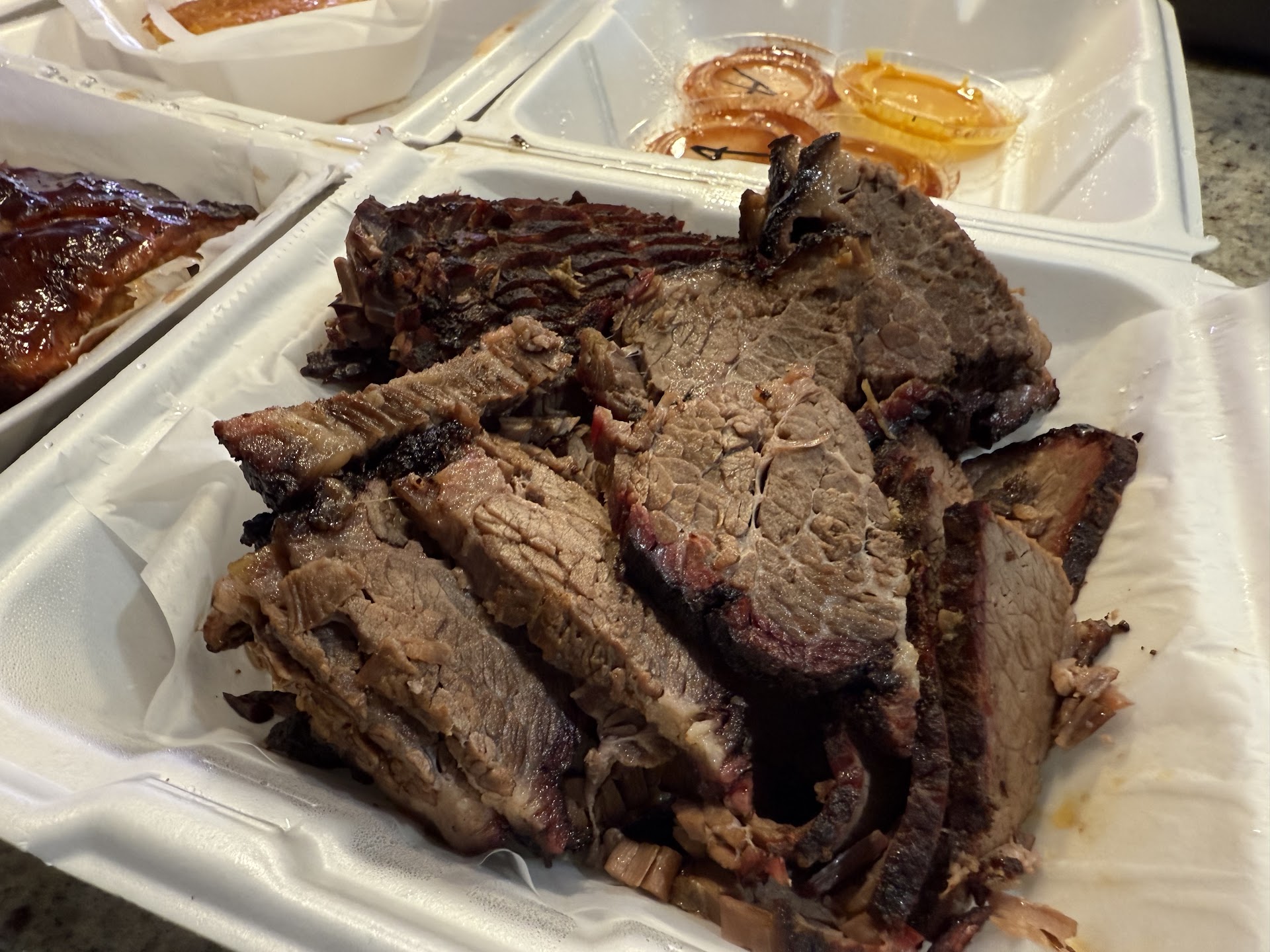 Place an order for 3 meat 2 side and an extra side of 10 mac n cheese bites. Ask for 2 sauces and I’m told the first one is free but the second is $1.50… they never used to charge for sauce, it was always out at the table and you filled a few small cups to take home with you.