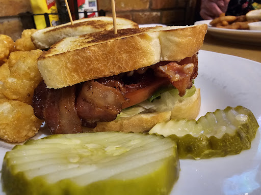 My companions were both happy with their BLTs and their bacon was crisp as requested. It's amazing how often that doesn't happen. My cheeseburger was pretty good. The tater tots and onion petals were typical frozen bar food.