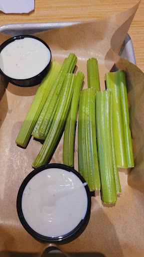 Not once did a waiter talk to us. They brought us our food and check and that was it. Even sitting there for half an hour with an empty tray, nothing. After we finished our meal, nothing. We waited about ten minutes to see if a waiter was willing to offer more wings, but after nobody came, we decided to just pay and leave. So in the end we waited about an hour for 10 Buffalo Bit- err, "wings," and left hungry and dissatisfied after paying essentially twice as much for about 10 wings. But at that point, we'd been here for well over an hour. I noticed that they were preparing takeout orders like crazy though... maybe it will be in this location's best interest to close the restaurant and become a ghost kitchen instead? Clearly the customers dinging in don't matter, so why not just focus on the only thing coming out of the kitchen consistently entirely? Maybe that was like the point. It's National Wing Day so the people inside don't' matter as much as takeout orders? Regardless, kind of weird the place wasn't even completely packed and barely capable of servicing the people inside it...