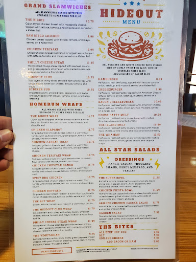 Never thought I'd find myself motivated to write a review of a Pub & Grill in a bowling alley but WOW! I am quite grateful for all the thorough reviews which led me to try this hidden gem. I had a craving for a Philly Cheesesteak sandwich and Hideout popped up as an area recommendation along with ugghh...Jersey Subs which couldn't hold a candle to this place. Since I was already familiar with the aforementioned chain version, I decided to be adventurous and was rewarded mightily. The menu version did not include sautéed mushrooms but when I asked for them to be included, they happily obliged. My sandwich came out perfect with everything just right......even the hoagie bread. The sliced beef was of very good grade ribeye (no tendons, chewy cartilage or excessive fat), the green peppers, onions and sautéed mushrooms were fresh and cooked with just the right amount of melted mozzarella cheese smothered all over.....Nummmmm! Out of curiosity, I decided to try the Homemade, Frito-Parmesan Corn Tortilla Chips as well. While they tasted nothing like Frito's I was not disappointed in the least. There was plenty of flavor and were accompanied by fresh Pico de gallo and melted cheese......you'll want extra because even with a small order, you'll get ALOT of chips. The atmosphere was perfectly fine with friendly locals and enough television screens to equip a sports bar. Give it a shot. I'm certain you...