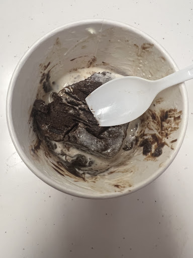 Currently, my favorite flavor is Espresso Chocolate Chip. Even though I can buy the frozen quart ice cream, the taste isn't the same at home than at the store. I've tried the kids and the small sizes (they use the same cup), but the small size is perfect for one person. I've gotten the kids size a few times so that I can try multiple flavors (indecisive much?)
