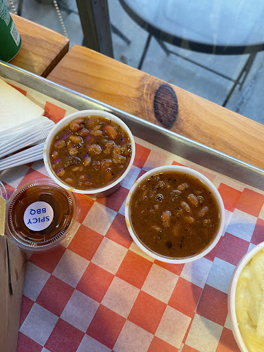 Read moreI took my family here after taking my son to the park. Itâs a small place with stool seating, Iâm not sure how long this place has been there but looks new. Had my 3 year old so seating wasnât the greatest for a child but he didnât fall or complain so itâs whatever. Haha. Staff was cool, ordering was easy. We ordered Mac and cheese Pork belly burnt ends (sauce on the side) Fries Hush puppies Pulled pork sandwich Brisket/pulled pork sandwich.