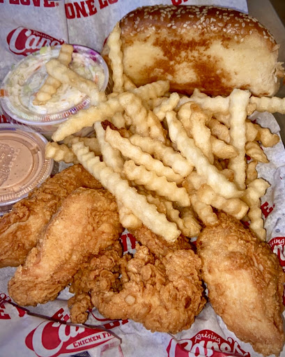 One of the BEST places for CHICKEN TENDERS, esp. their breading- light, crispy, NOT OILY, NOT GREASY at all. The House CANE'S Sauce is great, offering more peronality, characters than the xommon RANCH or BBQ sauces. My family believes the CANE'S is mostly the mixture of Ranch and BBQ, plus some SECRET ingredients! ... We dined inside. Nice, comfy furniture. There are a few tables with high chairs. COOL! .... There are 2 NOOKS, for about 6 people, in each. VERY NICE! The HOUSE "Fresh Squeeze Cold LEMONADE" is Excellent...The BEST in any national chain. The atmosphere is happy, upbeat. The staff is enthusiastic. The customers are happy to be here. There is a reasonable large outdoor eating area, under cover, with nice, clean tables and chairs. Today weather is rather cool, so all customers are inside, where it is not too crowded, and more cozy. ... We ordered 2 of the $10.59 BOX COMBO with 4 Tenders + House LEMONADE, and 1 of the $10.29 BOX COMBO, also with 4 Tenders , but with FOUNTAIN DRINK (30 cents cheaper) ... . This COMBO comes with a piece of thick Buttered TOAST (very nice), a cup of Cole Slaw (small, but refreshing), and a large serving of French FRIES. As a whole, it was quite a pleasant dining experience. We appreciate the chance to DINE IN, after the 2+ years of COVID. Our thoughts were then directed to other parts of the World, where COVID is still raging. MAY ALL be free of COVID very soon! ... Let's end with a promising note: WE WILL COME BACK TO CANE'S ... We are very lucky to...