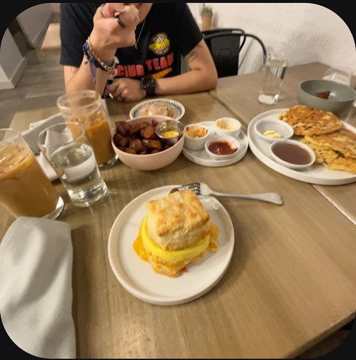 We were seated by the kitchen, and a woman in a gray hoodie and yoga pants who I presume was the manager spent our entire meal hovering over the handoff plane on the dining room side screaming at the staff. All you could hear was āBiscuit! Pancakes! Lox!ā echoing through the restaurant. Iāve been here many times before, and thereās usually an upbeat, fun energy from the whole staff, but today, it was silent in the restaurant, minus this managerās shrills. The cooks all had their heads down, and you could tell everyone working was on edge. Not only did this damper my experience as a customer (I could barely talk to my husband over this womanās voice), but imagine working in a fast-paced environment like a restaurant with your manager micromanaging every aspect of operations.
