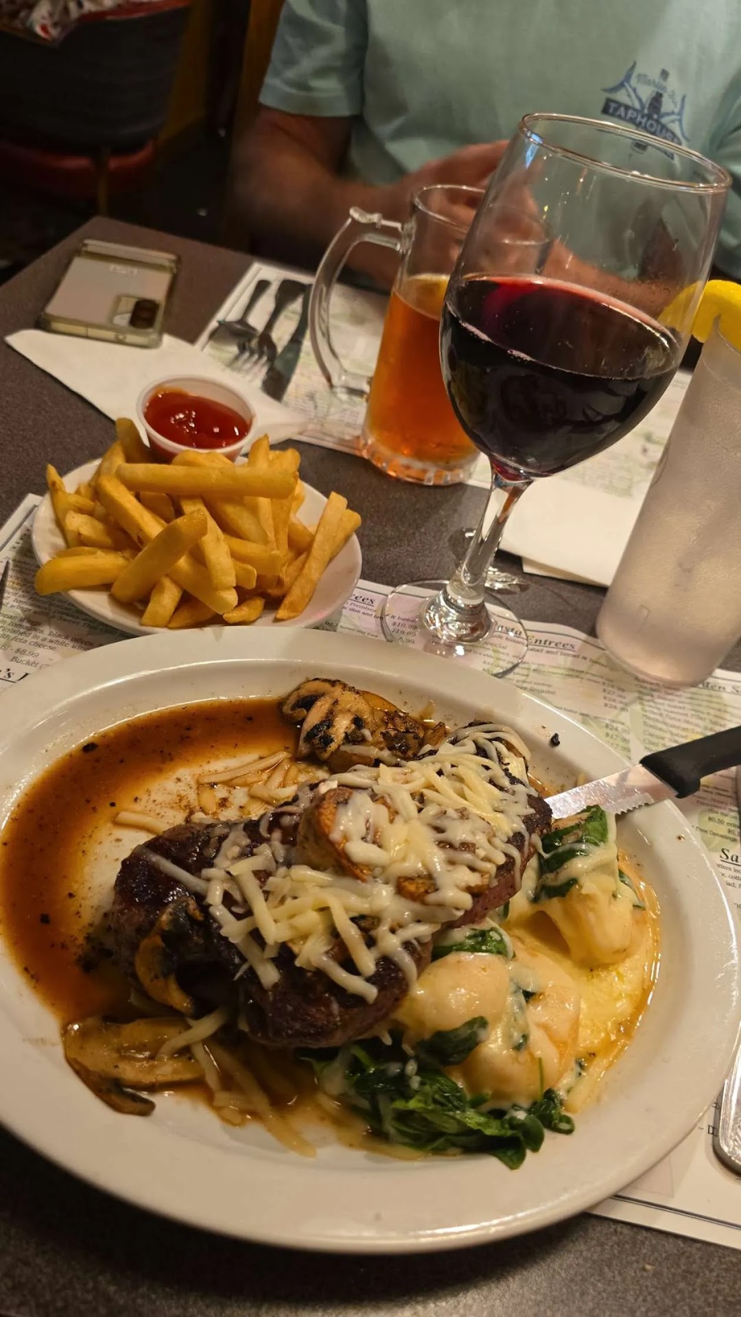 I go there every time I'm in Wheeling. Very affordable for what you get and very cozy. I usually get the shrimp stuffed NY Strip. You will leave full, happy, and with minimal damage to your wallet. What more could a...