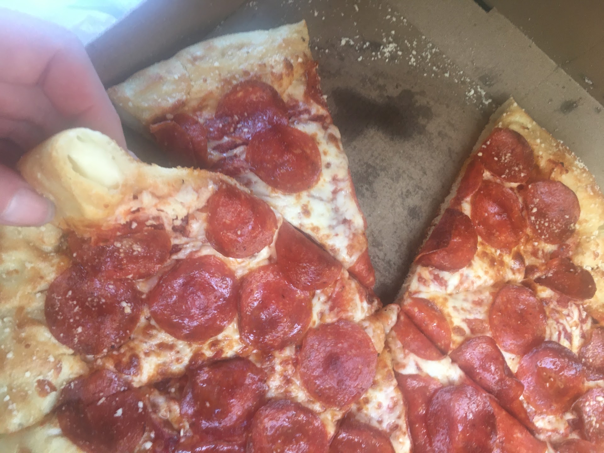 Read moreFood is ok for the price but canât help but notice how little cheese they put in their cheese bread. I used to go in there maybe twice a month. Every time itâs just one person working or two. The employees look tired and barely moving. The black man who works there with the beard is extremely rude. I asked him how I can get the food that my daughter order online and he rudely told me to get the three digit number and then turned around and left, not helping me at all. During one of the many waits you have to endure to get your pizza from this place, I noticed people take cash and donât wash their hands. Some of the people working there have beards and they donât have a fishnet on it what so ever. I have stopped ordering from ever since I had a curly pubic hair in my pizza. That was on Monday. I wish I took photos. I am not familiar with technology. My grandson is writing...