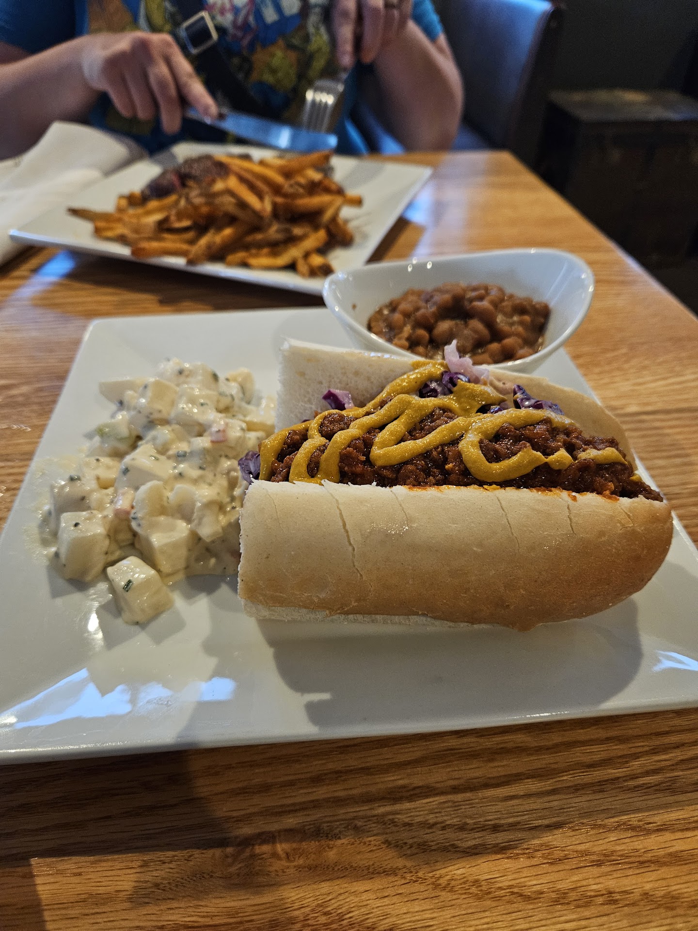 Low rating mostly due to service, not food. Food is probably 3-4 stars. It was a busy night, but there were a couple small empty tables , so they weren’t overflowing. That being said, Bear with me for the long list of service issues. I met girls from work, I think we had party of 9. We had a reservation, and were seated relatively quickly, however, we were given a limited menu due to our party size. Most of the main entrées were on the menu, but we were not allowed to order any burgers, which is what a few of us had planned on since they are featured front and center on the website with like 8 different kinds. They also had a poor wine selection, not even a basic kind like Riesling, which is what I tend to order. The waitress was clearly stressed and took a very long time after getting our drinks to return to ask what we wanted to order, like half an hour before she came back. Any questions that we asked about menu items, we’re clearly an irritation to her. After another hour went by, we still had not received any of the appetizers let alone anything else. At no point did the waitress apologize or give us an update for the amount of time it was taking. Finally one of my friends asked about the appetizer, and she said the chef is working really hard, sorry we are behind. We were nice and did not complain. Shortly after that, the owner/chef came out to apologize and thank us for coming in. One of my friends semi-joked that we could get a free round, to which he nervously laughed off, although I’m convinced now that we should’ve gotten at least that. The food finally started coming out almost 2 hrs after we arrived. No one got to eat together as the plates were trickling out about 10 mins apart. I ordered chili and salad. The chili came long before the salad. Two of my friends ordered fried green beans, they were good, but only one came with the dipping sauce, we told her to ask for it but she was just ready to leave at that point. Finally, one of the most annoying things of all happened, we got one large check. We told the waitress that we were paying separately, she informed us that unless it was cash, it all has to be on one credit card. Maybe it’s me, but this is something I had never encountered, I mean, many people tend to pay with cards. So half of our party had to walk across the street to the closest ATM, I told them I wouldn’t judge if they just didn’t return. We all decided we won’t be back. They are a newer establishment, maybe they will be able to work...