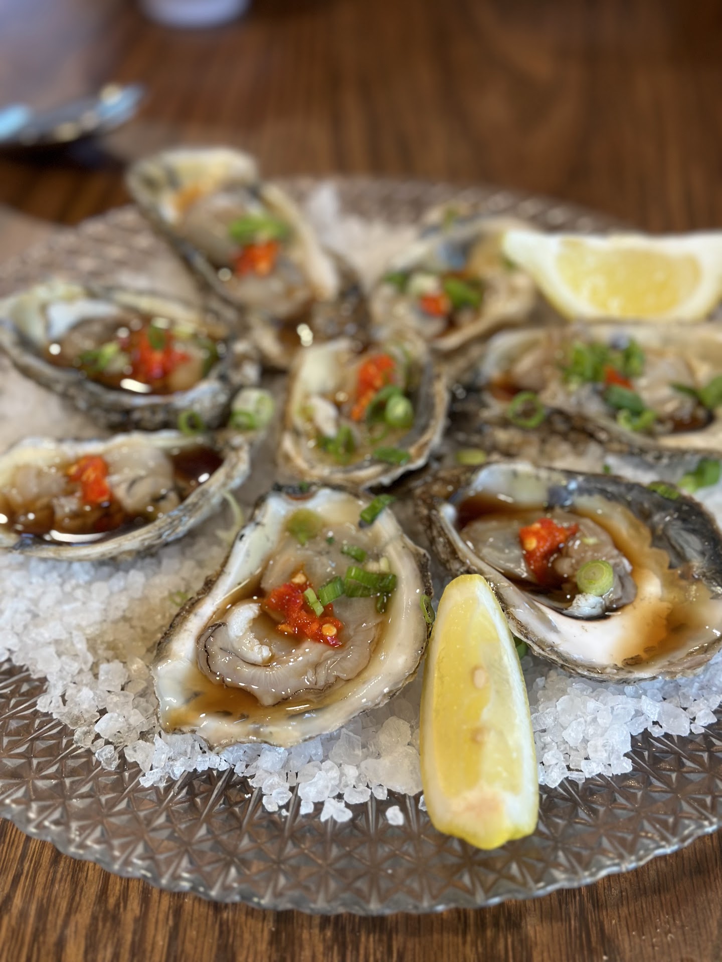 Spicy Chicken Wings $14.99 appx: Large Wings, deep fried, tossed in house Spicy sauce. Very flavorful and beats the value of other restaurants. Spice level-medium. Didn't get jalapeños like other reviewers though. Chicken Pad Thai $10.99: Generous portion for value but more on the tangy. Prefer more sweetness to balance the sour but delicious! Fresh East Coast Oyster (dozen) $30 (Uni optional $5 each): Very fresh and cold, large oysters on a bed of rock salt, topped with house pepper sauce and gold leaf. Uni was fresh and sweet which is worth it and necessary for the oyster. Overall, needs more house pepper sauce or at least an extra sauce ramekin on the side to pour on the oysters cause it was bland and didn't get any lemon wedges. Ghostbusters Roll $15.99 appx: Spicy! Very tasty with the perfect amount of ghost pepper house sauce. Generously portioned and the flavor was delivered! California Roll $5.50: Again, generously portioned. The daughter enjoyed it and ordered another Roll. Seafood Laab Salad $19.99: Should be called Sashimi Laab Salad because the proteins were raw (didn't know). So worth it! Lightly dry seasoned. Prefer more of the seasoning w/a wedge of lime and a touch of fish sauce. Personally added a touch of soy and it tasted splendid. Didn't get spiral daikon or flower like other reviewers. Worth the value and...