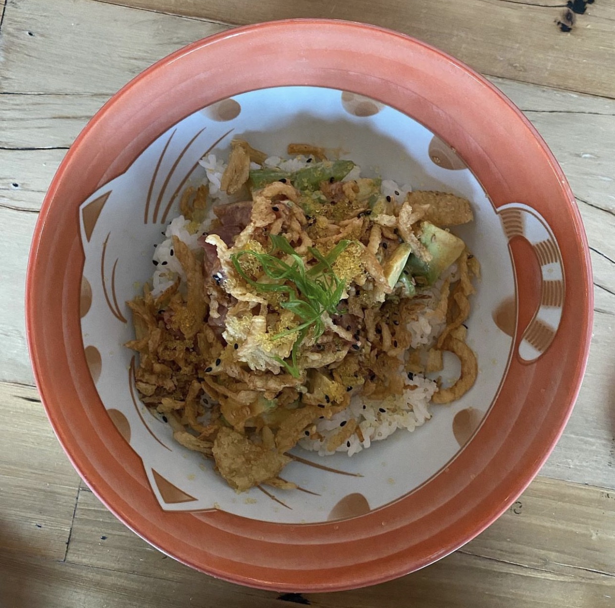$25 yuzu poké bowl • bluefin tuna, yuzu tobiko, avocado, yuzu sauce, ponzu, chili oil, crispy onions & sesame ⭐️⭐️⭐️⭐️⭐️ A delicious refreshing & healthy bowl! The avocado was super fresh & the bluefin tuna tasted so smooth & buttery. I like the contrast of the tuna with the crispy onions. Very good, will return!