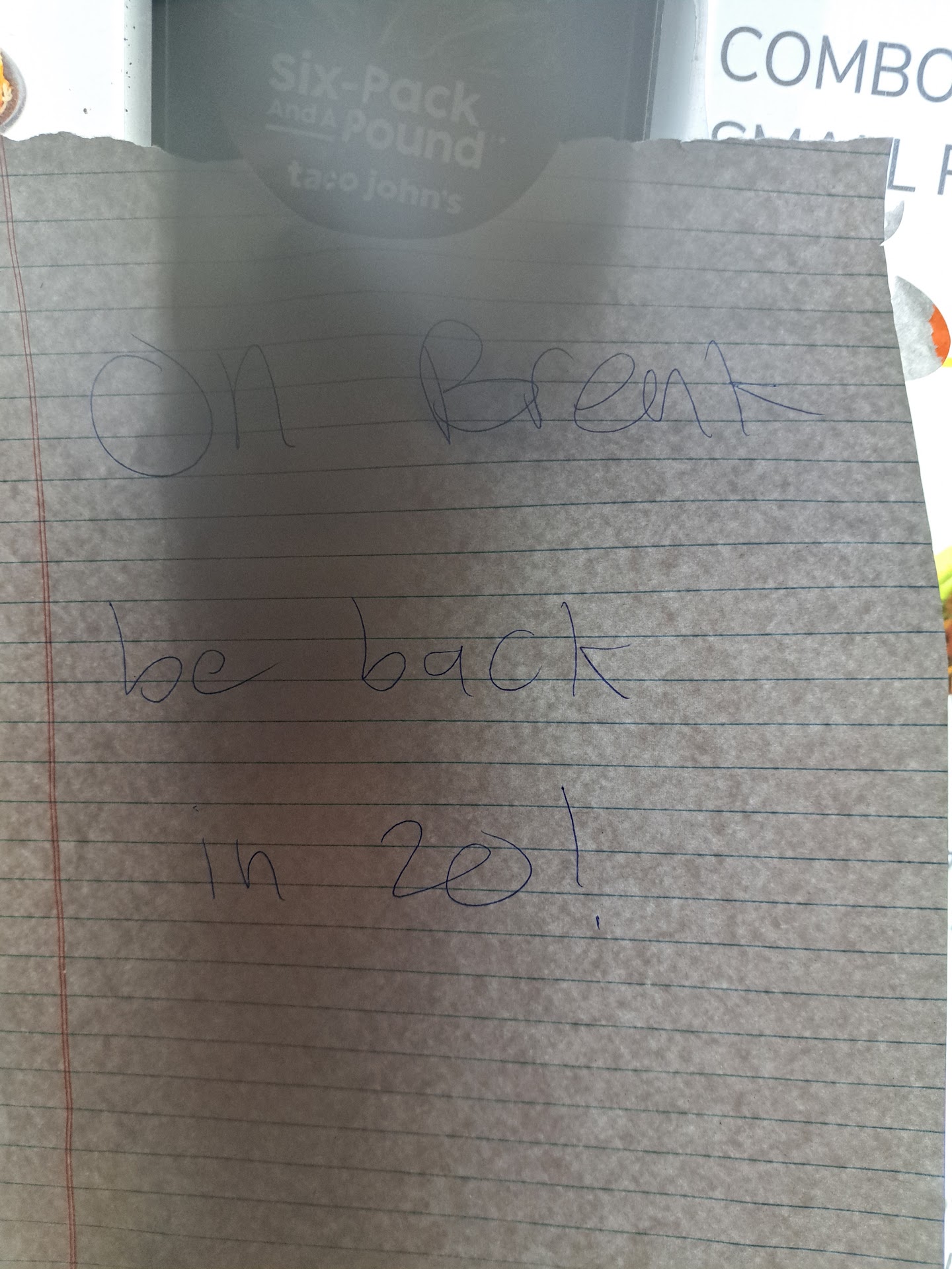 Read moreI rate my last experience at taco johns a 2 star. I could see that the employees were overwhelmed and annoyed. One of them was in tears. Taco Tuesdays are busy but we had a small order and it took them 12 minutes to get out 2 items off the menu. Meanwhile while I waited for my family's food my meal got cold. Plus the order was made wrong. They put two soft shells together to make a chalupa.... the line was a mess, I could see my tacos slide across all the tomatoes and lettuce and other left overs from the previous orders. Also the girl that was in tears didn't have her shoes on when she left the line. It's very important to your customers that your line and staff are well maintained because it makes it feel uncomfortable for your guests to eat in and have a...