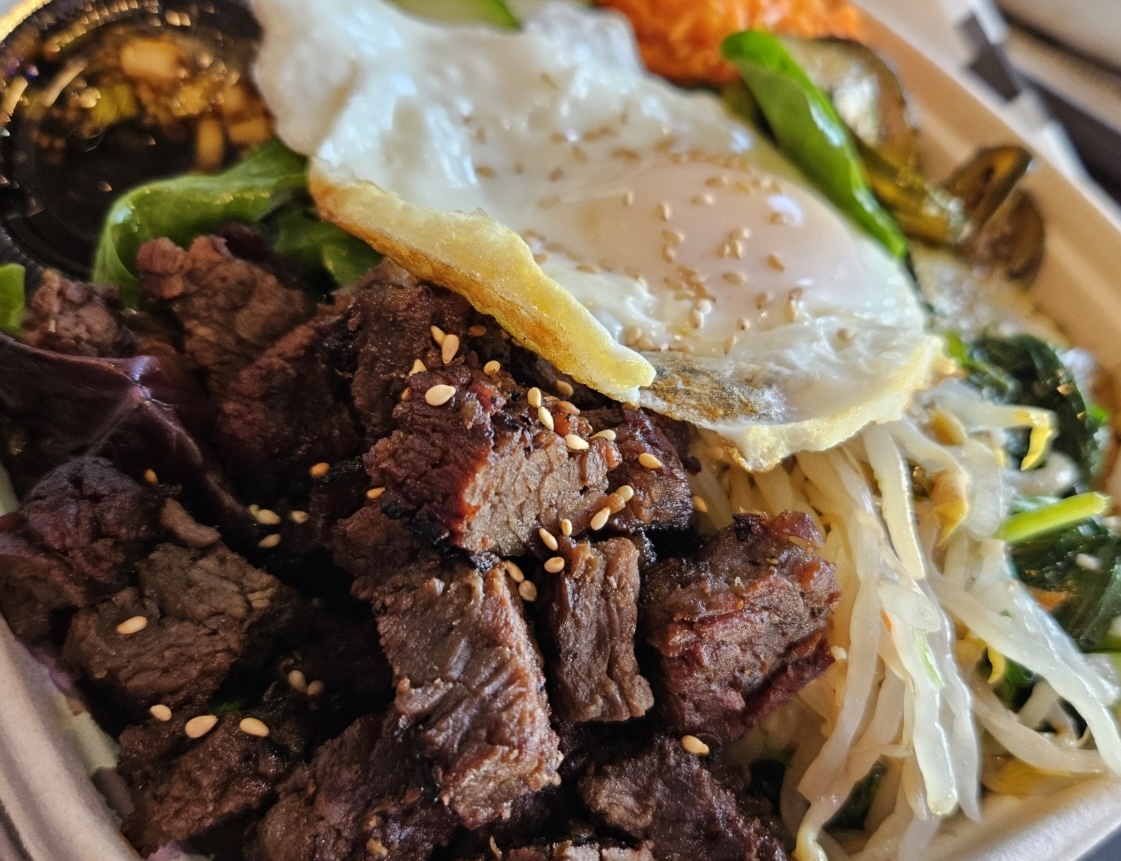 The staff behind the counter was sweet and helpful! She shared their food ordering process and then took our orders. While we waited, we grabbed compostable silverware and made waters with lemon. The food came out within 10-15 minutes and we finished both our bibimbap bowls.