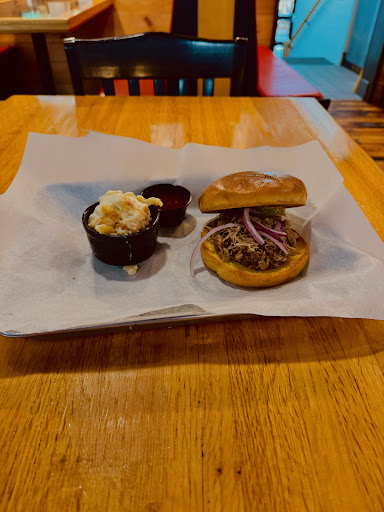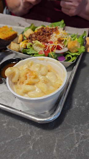 We came out tonight, a Friday evening. This was our first time here, and they were moderately busy. We ordered cheese curds (very good), loaded brisket fries (very good), a platter with pork and smoked sausage and Mac & cheese (all very good, though the Mac & cheese was over-cooked, the flavor was good). And peach cobbler (horrible. Worst peach cobbler I’ve ever eaten.) The waitress was busy, but kept our drinks filled. Only issue was that they didn’t bring us silverware or condiments or paper towels when they brought our food. We had to get our own paper towels from another table. When they finally brought salt and pepper the salt was empty, so we asked another table near us to share theirs, which they kindly did. All that really wasn’t a big deal, and I wouldn’t take stars off for it. I understand being busy and things happen.