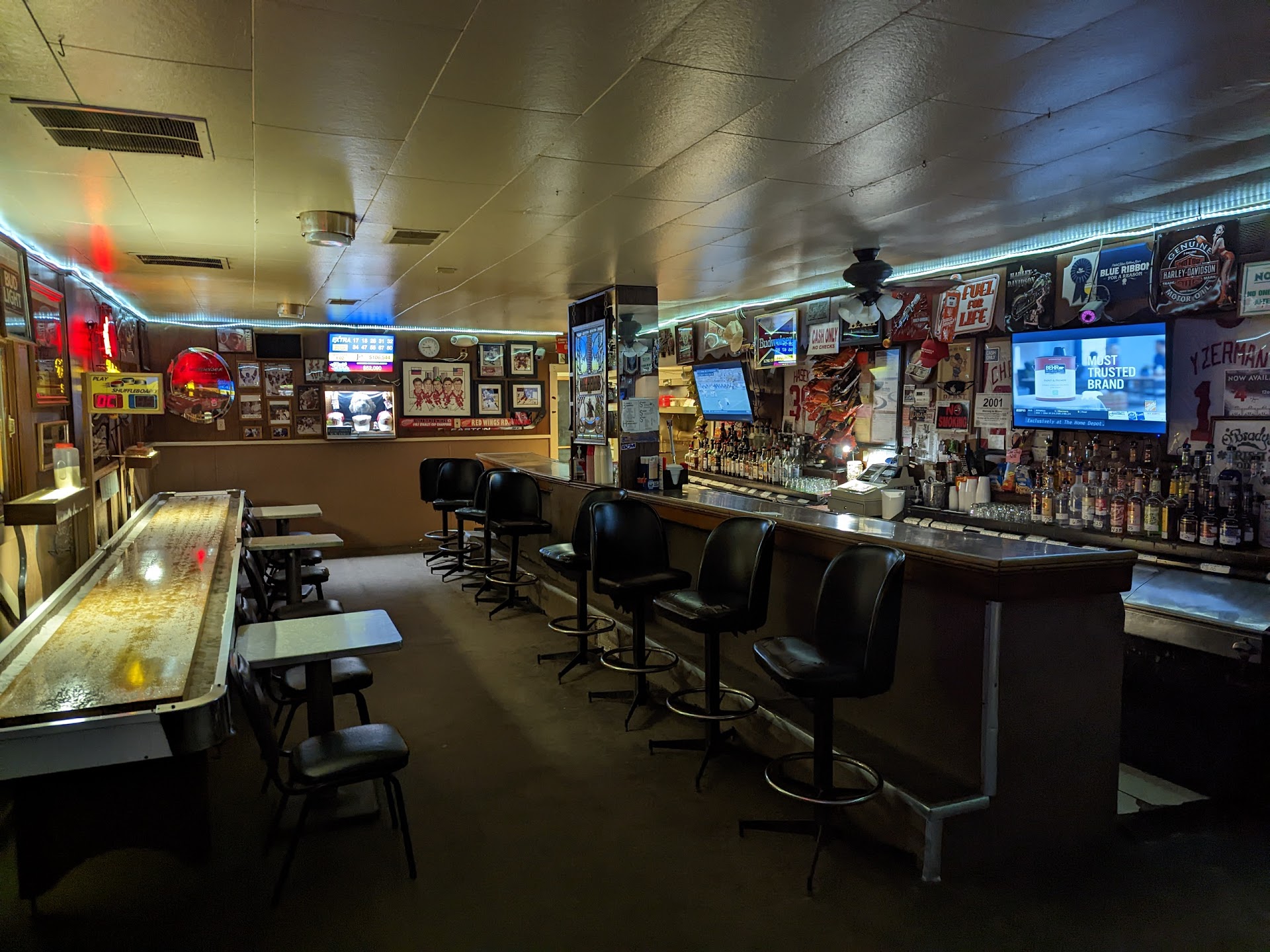 Perfect little dive bar. If you're looking for a relaxed, quaint place to have some drinks, bar food, maybe play a game of pool, and not feel judged, this is the place. It is cash only, so plan ahead. Although, they do have an ATM. Husband and I had some drinks, played some pool, and got some snacks. Shared the chicken strips and onion rings. Both were good. Came out quick and were very hot. It's your typical frozen food that was popped into a fryer, like I said, bar food. Pool is $1 for a game. Juke box is $1 for 3 credits. When we went they had signs around stating that karaoke was Friday and Saturday nights...