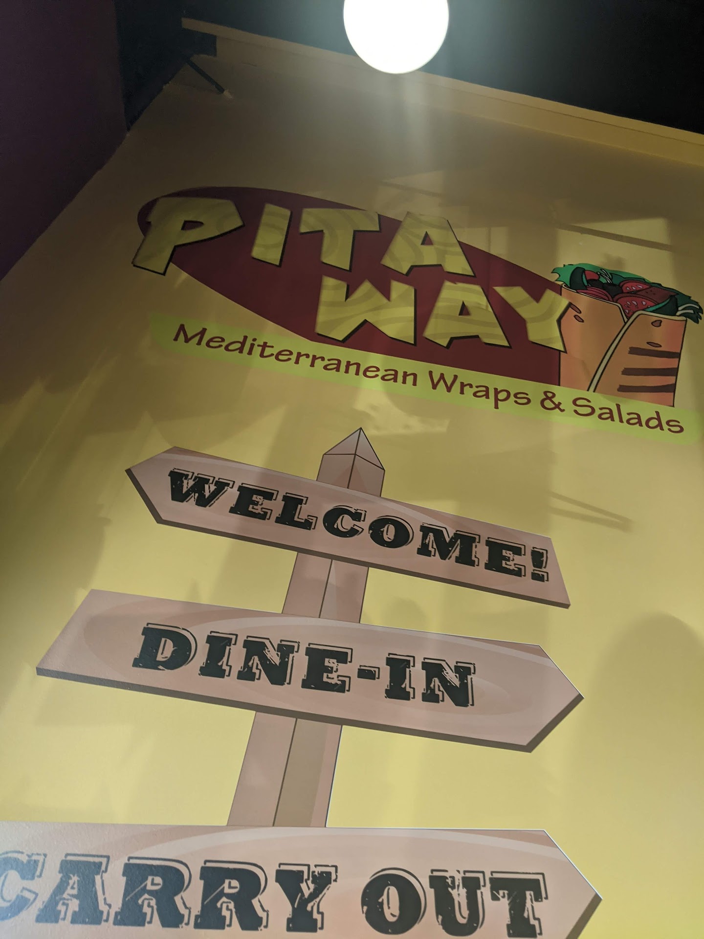 Just got back from Pita Way. We enjoyed the food. That said, a couple of things that weren't great. We have never been there before. We were given a gift card and great reviews on the food. There was no clear place where we order. The cash register is right in front, but people were ordering in the back at the glass counter. Ok, so I guess we will follow?? So 3 people in front of us and 5 guys behind the counter putting together orders. Cool, I guess we will wait and figure out what we want from the uneven hanging menu Smh! Now we say, how do we do this?? Ohhhh it's to the left on the wall.(someone pointed) Hmmm...ok. we decide a "Bowl" sounds good. The guy taking our order has a mask on. Great!! He was hard to hear him tell us what goes in the bowl. So look to the left...now follow 1-3...got it?!! Not really, but we did ok. The employee looked very annoyed. Obviously, we couldn't see his face but we could see his eyes. He was not impressed with us not knowing what to do. Even though we had said we've never been there before. Okay, everybody has a bad day. Now we give our gift card and something's wrong there. Another guy has to come help. Ordered a drink, didn't even know they had fountain drinks until after we paid $2.66 for a 16 Gatorade, yikes. The fountain drinks are way off on the other side of the counter in the corner. Enjoyed the food, really did not enjoy the place! The floor is Very Very dirty! Tables were not cleaned off. Five guys up front and it looked like a couple guys in the back, anyone cleaning? We would like to eat here again but feel the way that the way the restaurant is kept may keep us from eating there again. We felt very rushed and confused.The food on a scale of 1 to 10 (10 being amazing) We gave it a 6. Store appearance sadly a 3 and a 4 for customer service. We were excited to try something new. Oh well, maybe we'll try another location to see if it's any different. Maybe someone should look at how this one is...