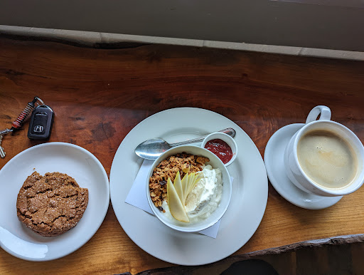 Read moreI ordered ginger molasses cookie, granola & yogurt bowl and an Americano. Granola bowl is very well balanced between yogurt tanginess and granola crunchy and compote sweet. Ginger cookie has a nice flavor but very mild. Honestly, if you were to blind taste test the cookie, I couldn't tell you that it was ginger or molasses, but it does have good flavor and well baked. While mixing my granola and yogurt, I misproportioned the mix and ran out of granola. So I asked if I could have a little more granola and it was no problem. The coffee had a weird smell to it. Something akin to hemp or flax or something hippie-ish. But the taste was rather yummy and I drink it all so it couldn't have been that bad. If you're a fan of homemade granola, even if it's a little on the sweet side, they sell it separately and I was very tempted to purchase it because it was definitely the highlight of the breakfast. Service with a smile. Cafe cleanliness is above average with no concerns there. Seating is in one big open room so louder echoey noise level is expected. But at the same time creates a festive mood. No plastic or styrofoam present. Refreshingly the plates and silverware were actual ceramic plates and metal silverware. Even the fruit compote cup is a paper product. The open room is so open that the bakers are even actively kneading the bread dough with no barrier between the customers and their work station. It gives kind of a an old world meal feel all very pleasant. It was a little on the pricier side but that's to be expected for fancy white salmon. However, it being a locally owned business I'm happy to...