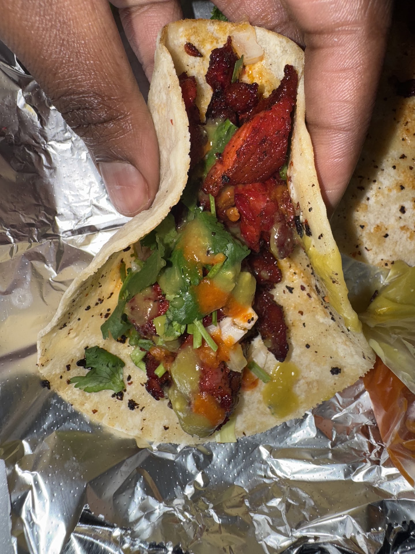 This tacos are so good but the reason of the 3 stars is because they always run out of food they never have the whole menu,this place is always full and they should have plenty of food , I been there at 8am 9 am 10 am and they never have carne desebrada today I was there since 8:30am they didn't have potatoes and eggs burritos or tacos and I still made an order that was giving to me 45 minutes after I order it ...not so happy...