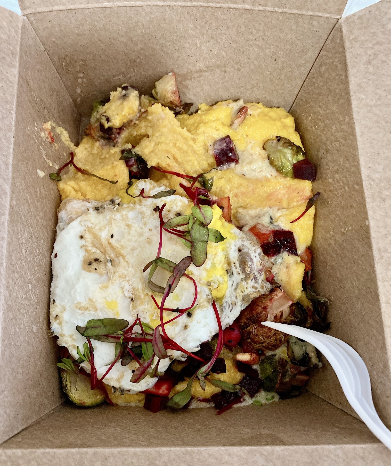Beautiful place and location but the food isnât good at all, $11 for a egg sandwich is ridiculous, the staff doesnât know what she was doing , asked to get the egg over medium and her response â We only have 2 options, itâs either sunny side up or crispyâ then I asked if she can just tell the kitchen that I want the egg over medium, again she said , on the screen it only give her two options and she canât go to the kitchen to tell them , untrained staff. As I was waiting by the pick up window , I witnessed all the untrained and overwhelming staff, staff used rag to clean around the stove and dirty counter, then she picked up the egg from the frying pan with bare hand , same hands that she was holding rag and cleaned around earlier, throwed the egg on the stainless counter, then get the other foods from the other frying pan , scooped the food in the box , then pick up the egg with bare hands again to put on top of other eggs. I know there could be worse happening behind the kitchen door but if they have the open window where customers can see what they are doing there they should practice all the standard hygienes for handling foods. Will not come back for the messes, the quality of foods and the prices arenât matching at all, and even if theyâre reducing the price I wouldnât want to eat here again, maybe I will come back for coffee or pastry, but not for any...