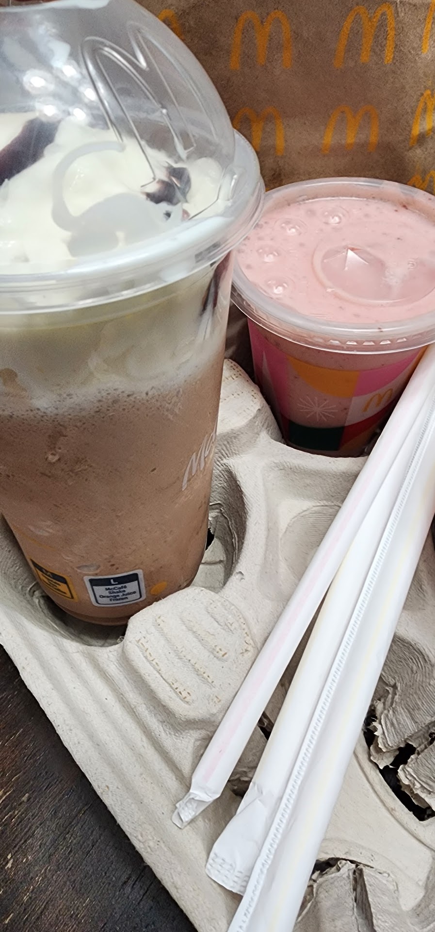BEWARE!!!!! I frequent this McD as I live in the area, and there are few options near home. It used to be awesome. There is nothing good anymore anytime, day or night. Workers are usually polite, but that's it. I just went through and I get a bigmac missing a meat patty, 2 medium sized, gross, soggy old fries that were likely dipped in the fryer to make them look "hot & fresh" but they are barely warm, greasy, soggy and stale. Funky, cold pies that are really old to the point they are thick and gooky and hard to even chew. The workers even went so far as to peel the sticker off the box(see photo) where the use by time was, they would've been better off using that miniscule effort to instead place them in the trash where they belonged. Paying $5 for a large frappe that is only 2/3 full(see photo). Worst of all, I grabbed a funky fry to try anyways, and out comes a big hair with it, and it certainly was not mine. I never complain but, I'm doing it this time. Especially with their unusually high prices for everything and for it to be so terrible, as well. I'm writing this hoping that many people will see it and hopefully enough will stop going here until McD can understand through the loss of business that this type of service is totally unacceptable and nobody is willing to spend (a hefty amount of) their hard earned money for the high priced garbage being half served. Furthermore, I've become very ill-feeling, already! That sure didn't take long, I should have known better than to continue eating anything after realizing all of these things. Lastly, because none of this is a one-time thing but a rather repetitive problem in general and overall, it has ultimately led to this terrible review. In the event they change these very serious issues with their incredibly poor quality and provide all of what is purchased, nothing missing or reducing the volume of what should be there, I will adjust or remove my poor review accordingly. I'm looking forward to some type of response that hopefully includes an explanation and a resolution to my specific issue(s) as well as a consistent, positive experience to follow. I'll give them time to respond. If this is relevant to you, keep an eye out for my follow-up or edited post, whether they...