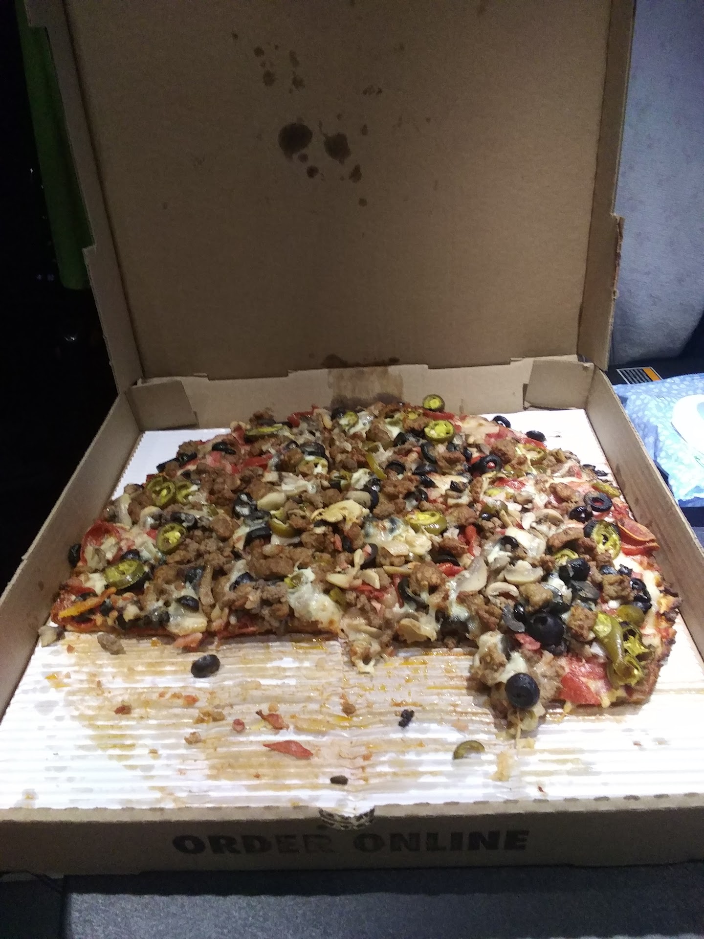 I am a truck driver. I like to try any local place I can rather than the same old chain stuff. Support local or you'll only have yourself to blame when it's not there anymore. Plus, how many vacation homes do CEOs need? Ordered for delivery to my truck (10-10 23). They were friendly on the phone. My pizza arrived right when they said it would. The guy who delivered my pizza was friendly and courteous. He found my truck without having to call for further instructions (that isn't as common as you might think it would be). I have had a lot of different pizza in a lot of different cities, mostly delivered to my truck while parked in places where I didn't have many if any, options for hot food. This pizza wasn't just good, it was GREAT! I got an XL Mega Meat but added black olives, mushrooms, extra cheese, and jalapenos. It's huge! Packed with toppings, too, but that'll be good for me. Most places I get a large pizza, usually about 14 inches, and I'll eat half the pizza. I don't think I finished a quarter of this one. Now I'll be able to enjoy this FABULOUS PIZZA as leftovers for a couple days. Thank you, Ange's Pizza for the great food and great service. Love it! And I really hope I will get a chance to order from y'all again! Now, for...