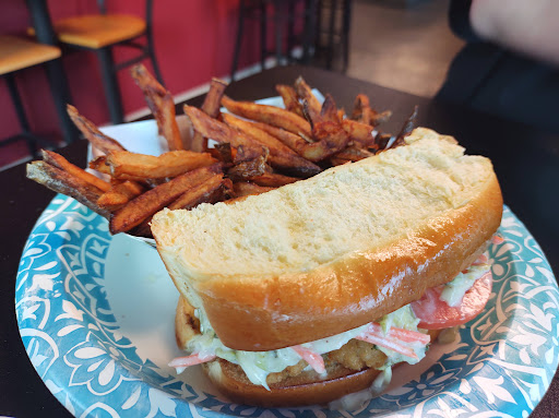 The sandwich was good, but could have been great with a few minor changes. Typically, a Cuban is made with honey ham, or some other such type of "sweet" ham. This is important because it balances the overall flavor of the sandwich. They use smoked ham, which made it just slightly on the salty side, but nothing to complain about overall. The pulled pork on it was good, flavorful and moist, no complaints there. The condiments were pretty standard for a Cuban: dill pickles, swiss cheese, and deviated slightly using Dijon mustard. Personally, I am a fan of Dijon on Cubans, but they are traditionally made with standard yellow mustard. The main issue I take with it is the bread. They don't use the standard Cuban bread, or equivalent; instead, it is made on a toasted sub bun. The bread is supposed to be thin and dense, and then "pressed" and grilled, either applying pressure in a pan, or in a sandwich press to give it a nice crisp exterior. The sub bun was none of those things, and just felt out of place. Overall, I would order it again, but don't expect a true to form Cuban.