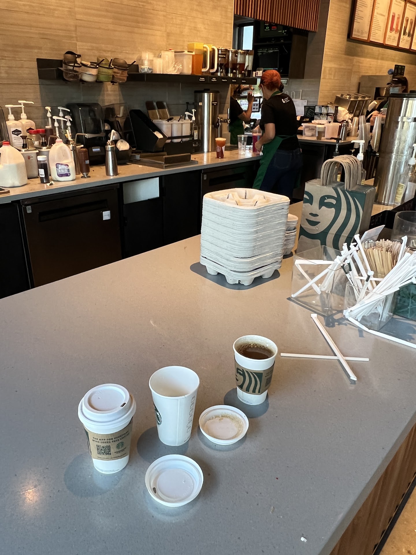 Read moreI must say I’m so disappointed today with my order. I come 5 days out of 7 and loved this Starbucks! My order is made to perfection most days, but sometimes it’s off and they are always more than happy to fix my order. But today… I came in to pick up my order and it was made entirely wrong. So I explained it to her, she removed the slip to re make it, and did not follow what the slip said at all. The coffee was dark and I had wanted extra cream so instead of pouring some out and adding more she just added some to make it spill over the sides and handed it to me. She saw how unhappy I was so asked someone else to re make it without the slip and left out the most important things to make it taste great, so the woman who re made it made an awe dim tasting coffee made entirely not the way I asked for. So 3 coffees later from a simple order and she passed the coffee my way without asking if it was okay, and walked away. I threw the coffee away and left without my coffee I was so upset and honestly...