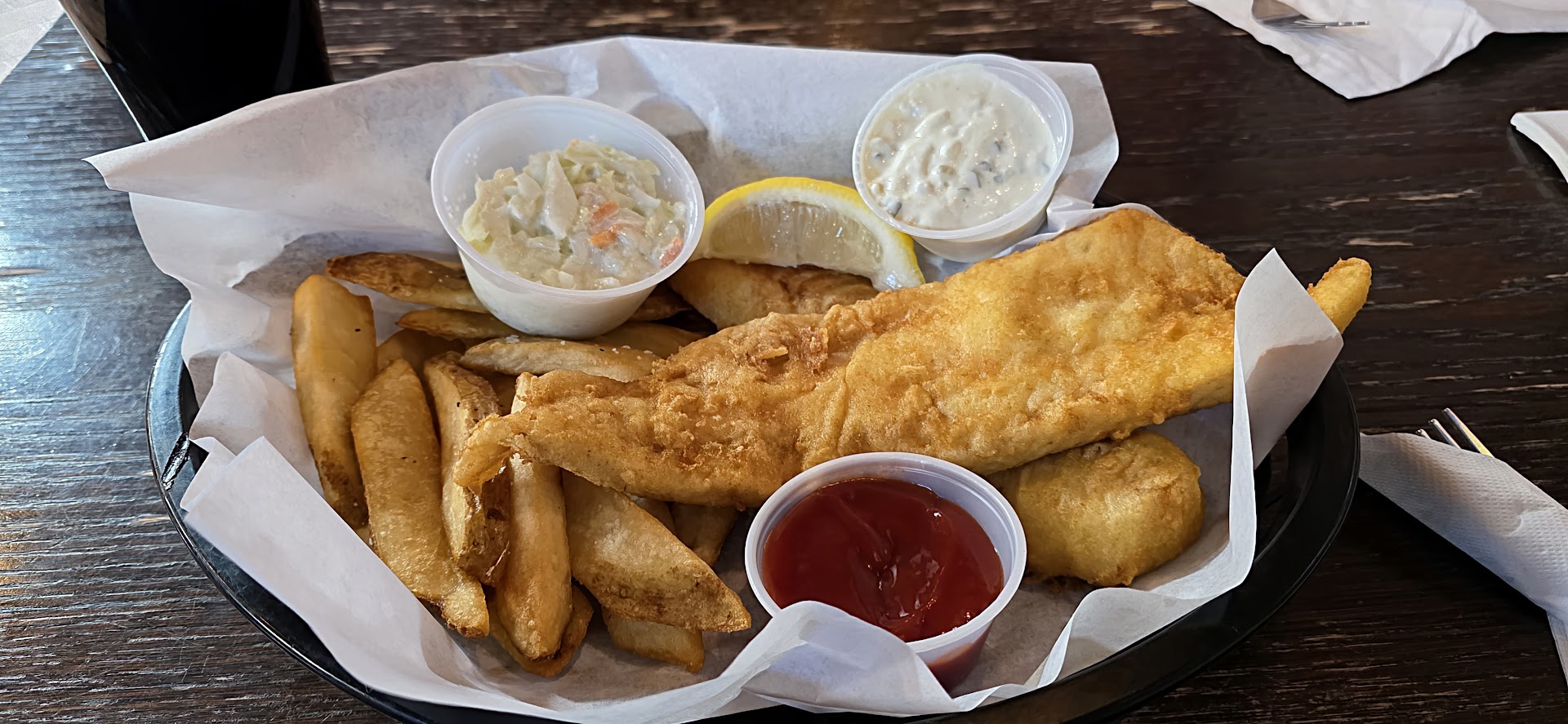 Read moreThe food was absolutely disgusting!! We ordered wings as an appetizer which was hard and tasteless. I ordered their famous fish sandwich which was not cooked all the way and the tater tots was hard as a rock. My husband ordered salmon and despite the grill marks it looked and tasted awful. We got several to-go boxes and paid the $58 bill which was not worth one cent of it. The next day I seasoned and warmed up the leftovers in the air fryer and it was no better so I ended up throwing it away. It's worth mentioning that the server was just as bad. We barely got to the table and didn't get to take our coats off before she asked us what we wanted to drink. Soon as she brought out our drinks she was rushing us to order and we barely had a chance to look over the menu. She wasn't friendly until she gave us the check because she wanted to be sure she got a good tip, we gave her $5. We are normally very generous tippers but this entire experience was the worst in a very long time, it was very disappointing, a complete waste of time and money. We will never go back which is unfortunate because we loved it when they were on...