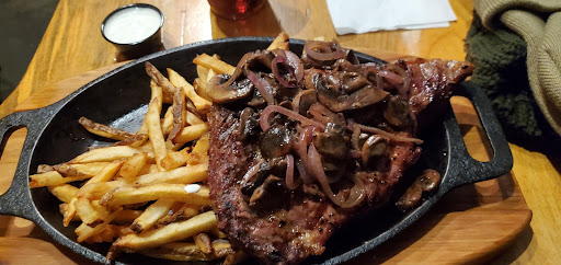 Upon receiving the bill, another $2 was added to the steak, for the mushrooms and onions, even though the menu describes the steak as served with mushrooms on top, so I guess it's $2 for some onions.