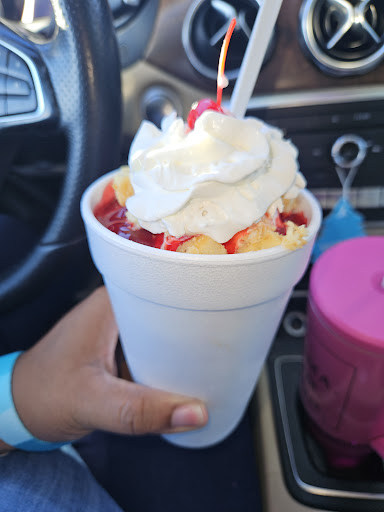 It's a very small icecream shop right next to a bike trail and a brand new awesome park! The building is small and air conditioned. There is bar seating for maybe four people, but with the line, it probably wouldn't be fun to sit there. Seems like the seats are mostly used for those waiting in line. There are a couple of picnic benches and several park benches outside, and if you cross the small road, there is a huge covered area with more park benches There is usually a line, but it moves very quickly because they are always well-staffed and the workers hustle. They serve soft serve, hard serve, and Dole whip (dairy-free and AMAZING). I believe they also sell slushy drinks. I will say, they don't skimp on the toppings. If you don't like a lot of toppings, I'd advise you to ask for them to go easy. They are priced very well, and you get a lot for your money. We have a family of five, and we generally spend $15 bucks, Maaaaaybe 18 if we are feeling especially gluttonous. I highly...