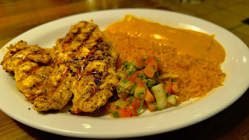 Shortly after, our spinach queso arrived and that’s when we placed our order. I got the Pollo Margarita (A grilled, lime pepper chicken breast and a cheese enchilada topped with queso. Served with rice & pico) and my wife got the Taco Salad Supreme (Homemade flour tortilla shell filled with ground beef, beans, lettuce, tomatoes, cheese and topped with sour cream). She also added avocado to hers.