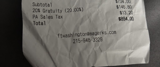 I have never left a bad review in my life, but this cannot go unnoticed. We came to Magerks in Fort Washington as a group of 9 for a company outing to celebrate one of our coworker’s achievements. We arrived at 5:30 PM and enjoyed dinner and drinks over the course of the evening. Everything was great until it wasn’t.