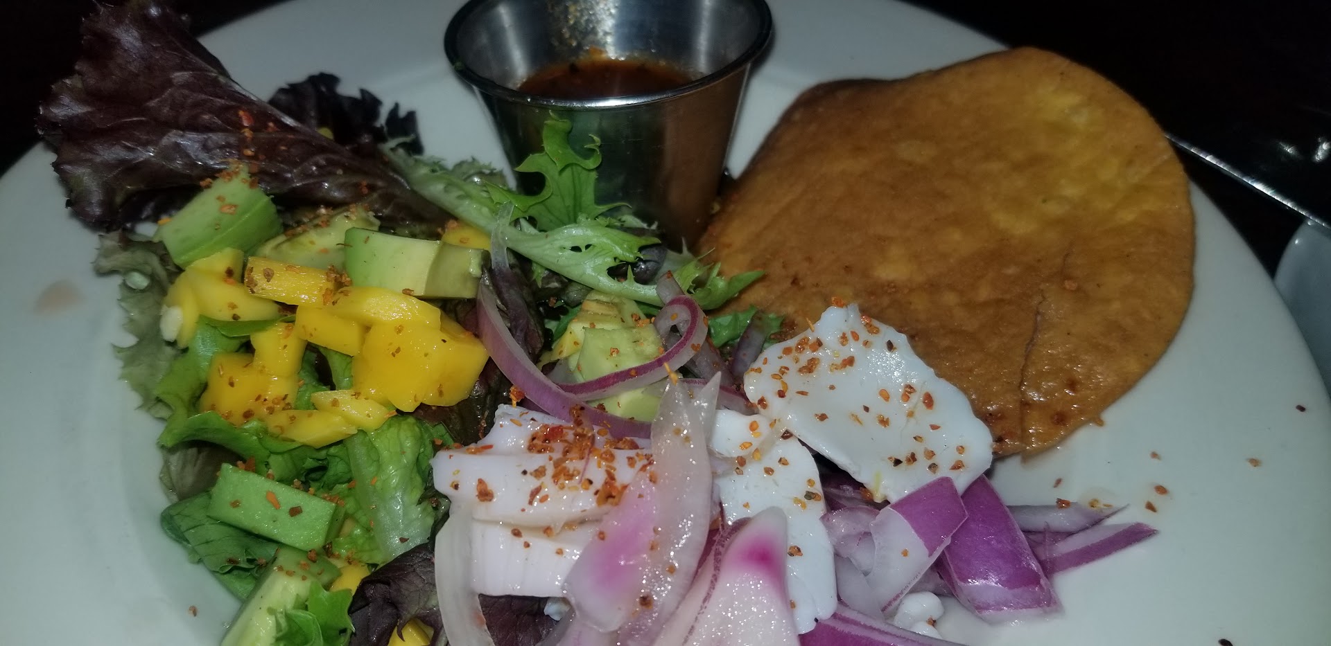 Food is where I am going to stop at three stars. To be Frank, it might be more like 2.5. We ordered the salmon entree, the skirt steak entree, and the shrimp wrapped in bacon appetizer. The shrimp were fantastic. Flavor was on point, super high quality, was very pleased. The salmon was also very good. Well cooked, and great flavor.